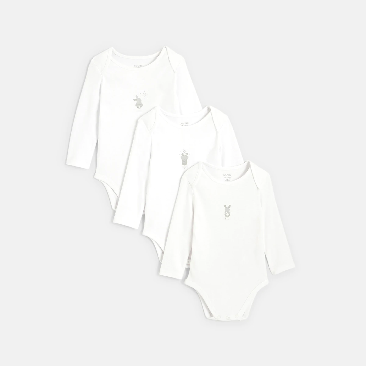 These soft jersey bodysuits have a practical design with an envelope neck and long sleeves. Poppers on crotch so it's easy to dress little girls.