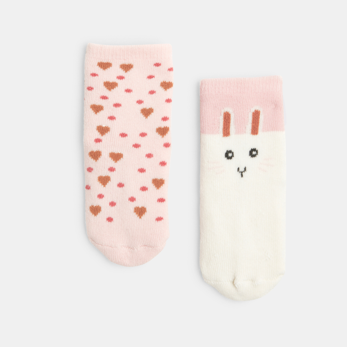 Ultra-soft socks with rabbits hearts and non-slip dots on the soles for safety from falling! Ultra-fluffy French terry interior for warmth even without slippers or shoes.