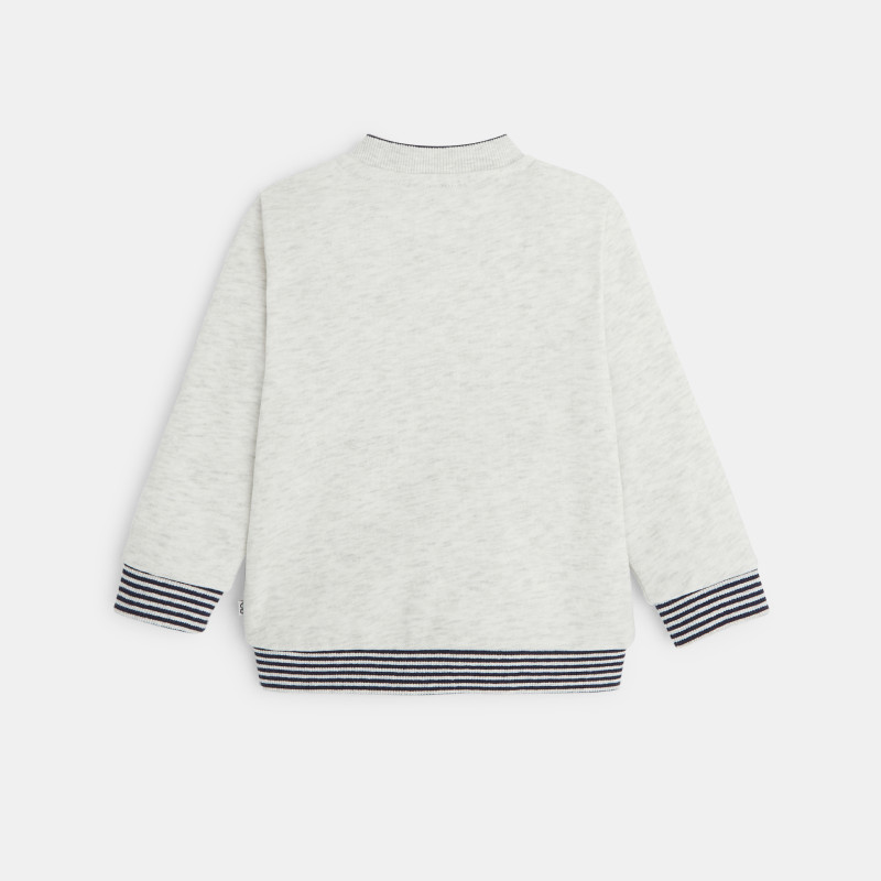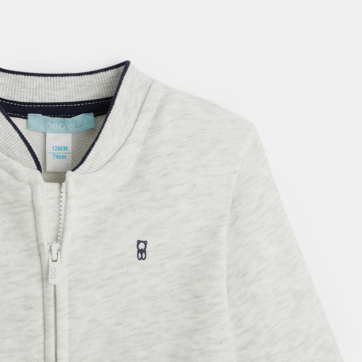 Hard to choose between a fleece sweatshirt and a light letterman jacket? Here's the solution with this zipped letterman jacket made with a peach-finish fleece fabric and featuring contrasting casual finishes.