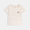 Short-sleeved tee-shirt for baby girls. Soft jersey knit fabric made with Act for Kids organic cotton fibers. Round neckline with snap-fastened shoulders for easy dressing. Dyed-thread stripes. Short sleeves. Heart patch on the chest. Small Obaïbi label.