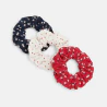 Réalisés en tissu imprimé ces trois chouchous élastiqués ont aussi indispensables que nécessaires dans les coiffures. Les filles aiment aussi les porter aux poignets. Taille unique. Idée cadeau. Accessoires pour cheveux. Lot de 3.