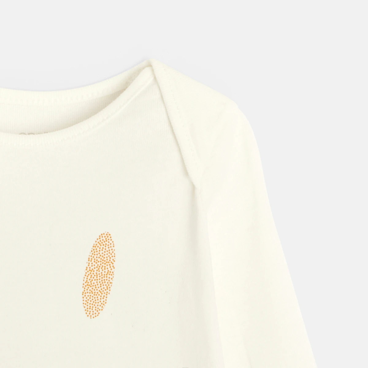 Les bodies à col américain croisé si facile à enfiler pour bébé s'animent de frimousse de ses animaux préférés. Lot composé de 5 bodies manches longues fond blanc à motif placé imprimé.