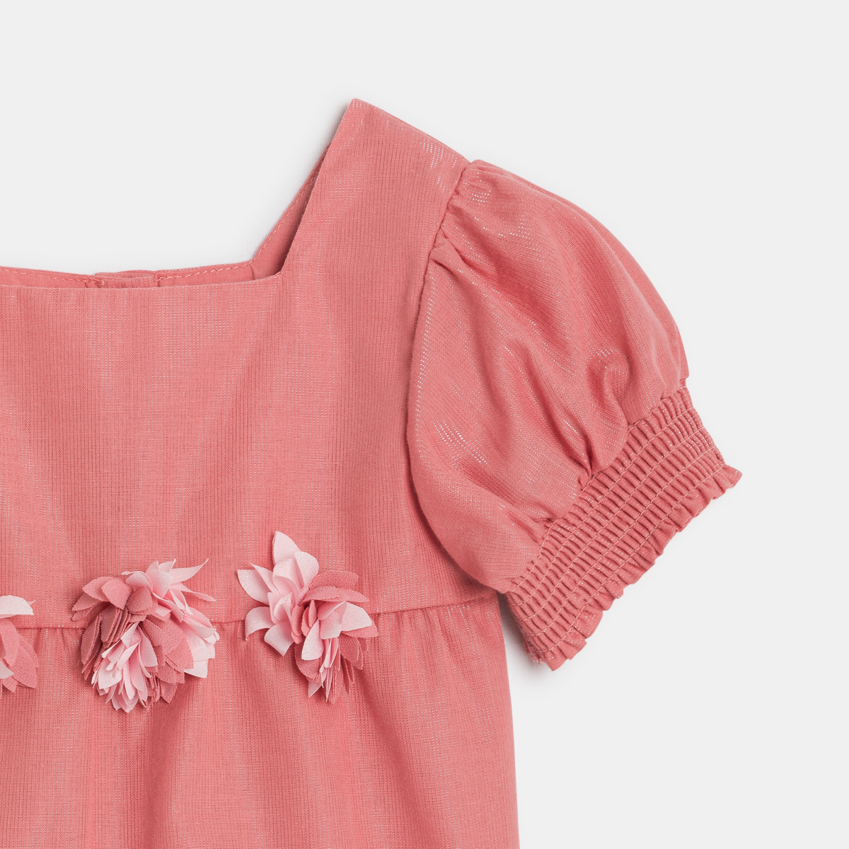 Avec ses détails élégants, cette blouse originale est la préférée des petites : des fleurs en relief, un coloris gourmand, une forme confortable, des manches courtes smockées et une encolure carrée pressionnée pour un habillage facile. Indispensable pour un évènement festif ou un quotidien chic.