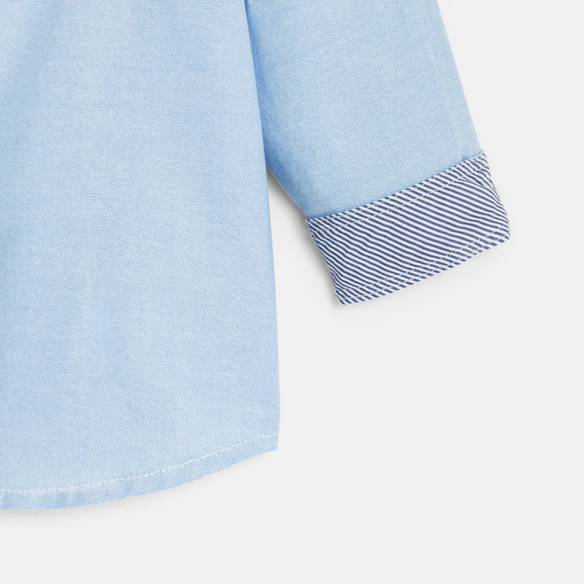 Elégante cette chemise pour les petits a tout d'une grande ! Une coupe classique boutonnée l'intérieur des poignets et du col contrastés rayés et des manches retroussables par pattes et boutons. Avec un chino ou un jeans c'est la chemise indispensable du vestiaire des garçons !