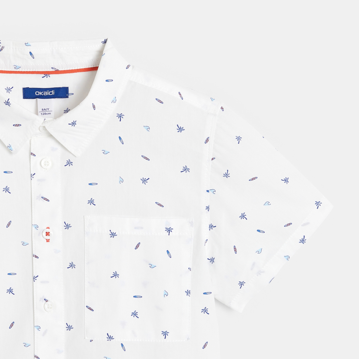 Ponctuée de petits motifs cette chemisette blanche passe facilement du2019un look chic (pour une fête une cérémonieu2026) à un look cool (pour un anniversaire une journée ensoleillée). Toile de coton. Coupe droite. Col chemise. Ouverture boutonnée. 1 poche poitrine. Manches courtes. Coutures ton sur ton.