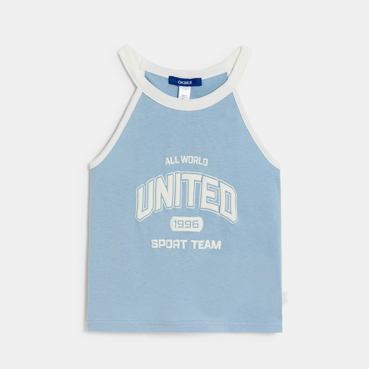 Épaules au soleil et style campus : les filles adorent déjà ce top en jersey doux. Coupe droite. Col collier. Emmanchures américaines échancrées. Dos uni. Base droite. Coutures ton sur ton.