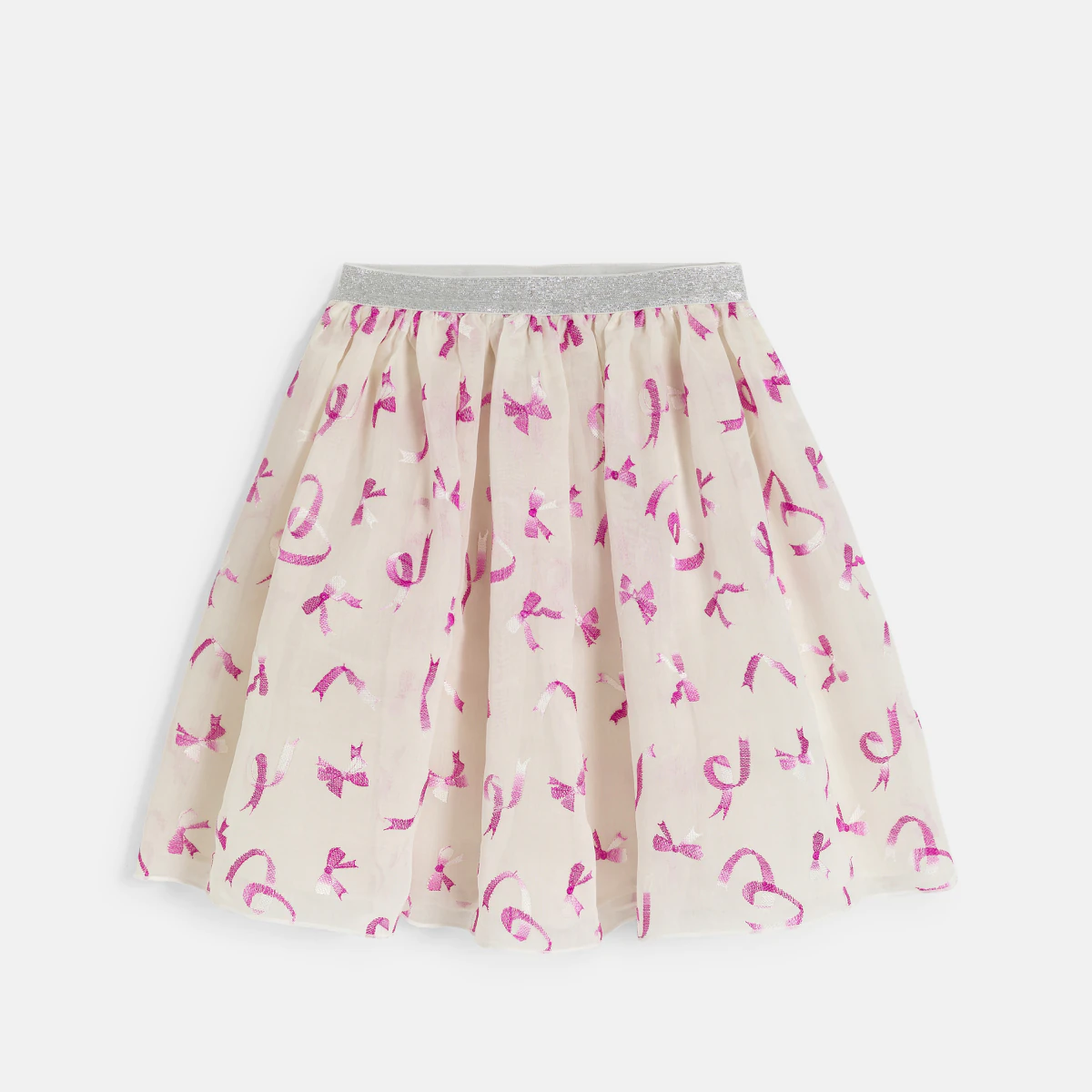 Air de fête et belle légèreté : cette jupe patineuse est dédiée aux filles qui aiment danser ! Voile doublé motifs brodés. Coupe évasée. Taille élastiquée pailletée. Doublure. Base arrondie.n
