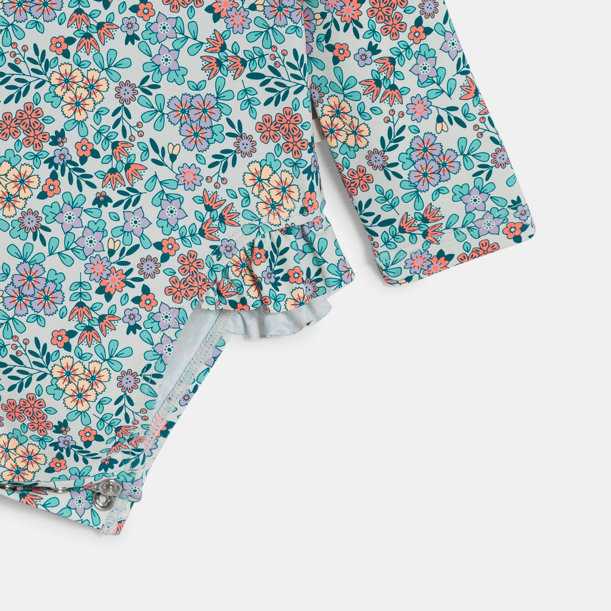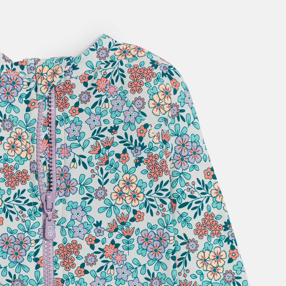 Description Pour protéger les petites du soleil lorsqu'elles profitent des beaux jours à la plage cette combinaison à manches longues possède un indice de protection anti UV maximum (UPF 50+). Imprimé graphique élégant. Le zip dos facilite l'habillage. Coordonnée aux maillots et combinaisons de bain Obaïbi.