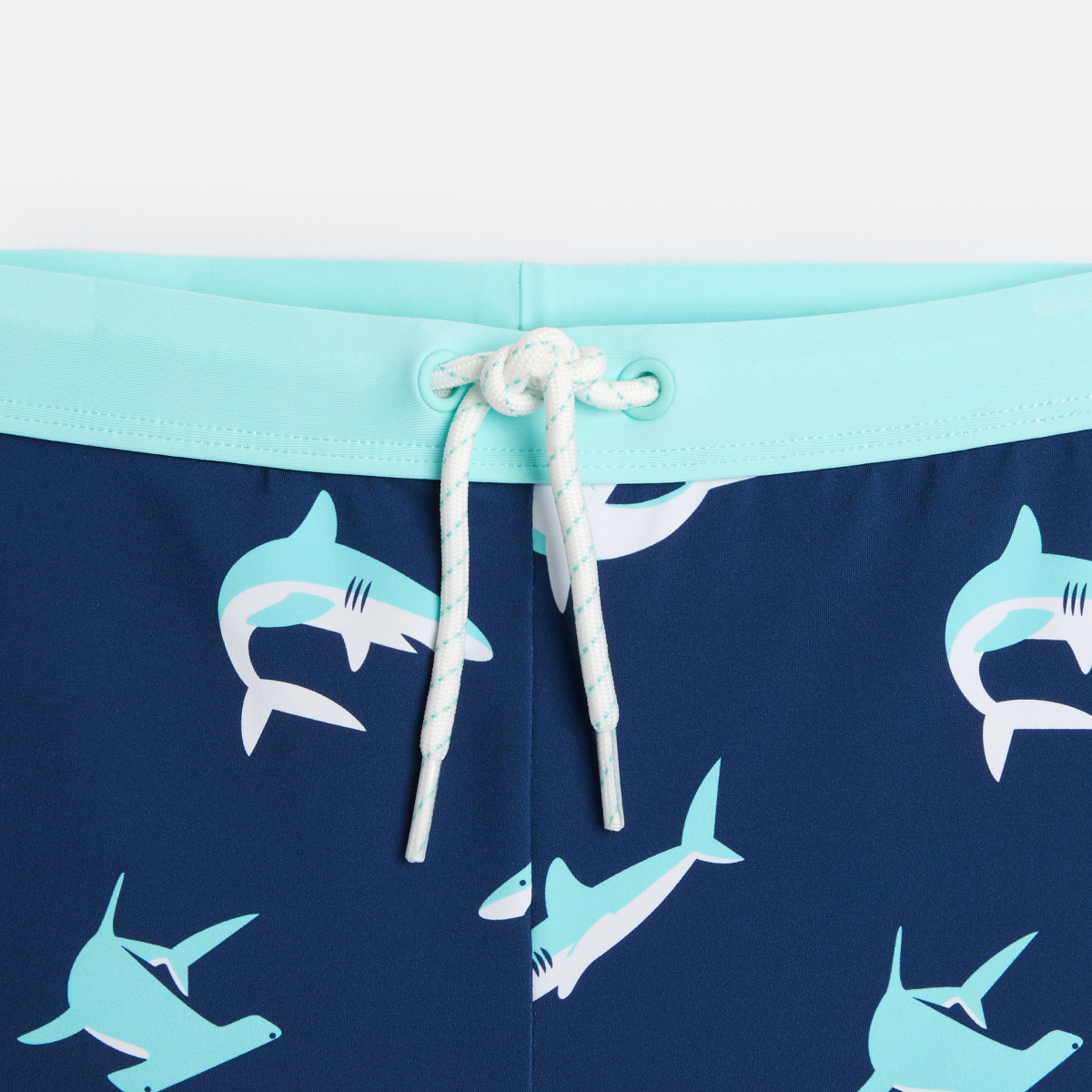 Baignades. Sports nautiques. Jeux de plage. Les garçons s'amusent bien dans l'eau et hors de l'eau avec ce shorty de bain imprimé de requins. La taille élastiquée se resserre via un cordon à nouer. Maille microfibre conçue pour la baignade. Sèche rapidement. Rincer à l'eau claire après la baignade.