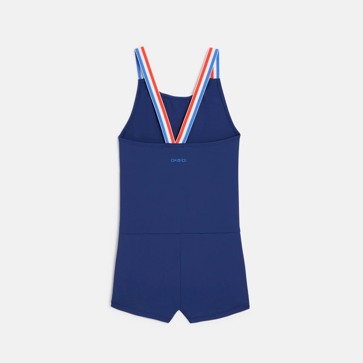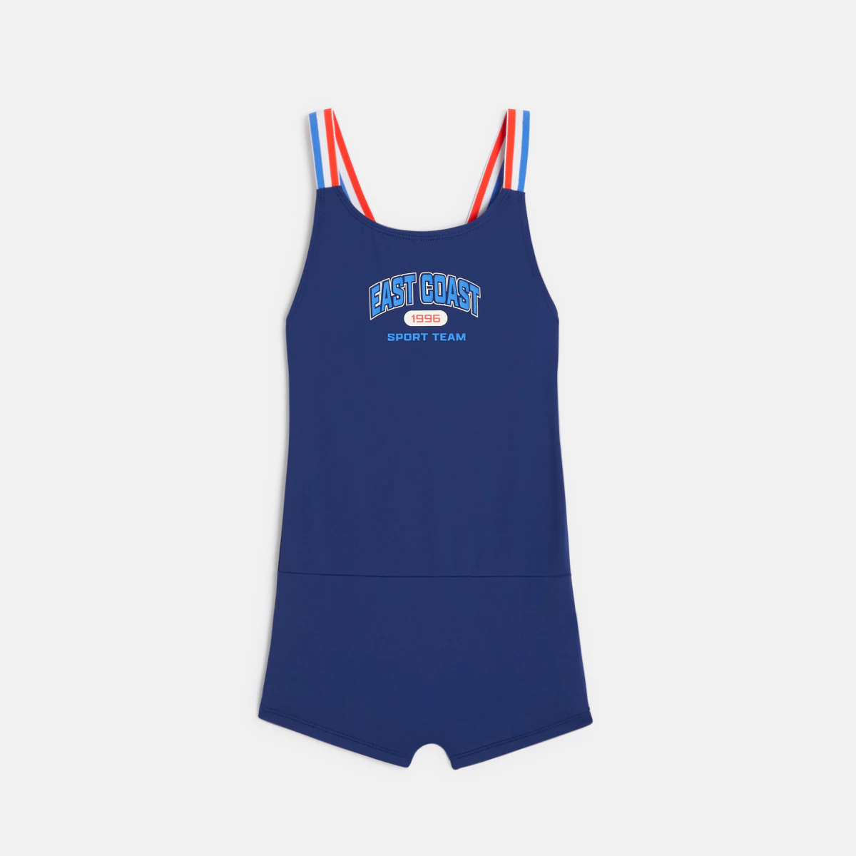 Style rétro et allure sportswear les filles nagent encore mieux plus vite et plus longtemps avec ce maillot de bain 1 pièce shorty. Bretelles tricolores élastiquées et croisées dans le dos. Bas de jambes façon shorty. Maille microfibre conçue pour la baignade. Sèche rapidement. Rincer à l'eau claire après utilisation.