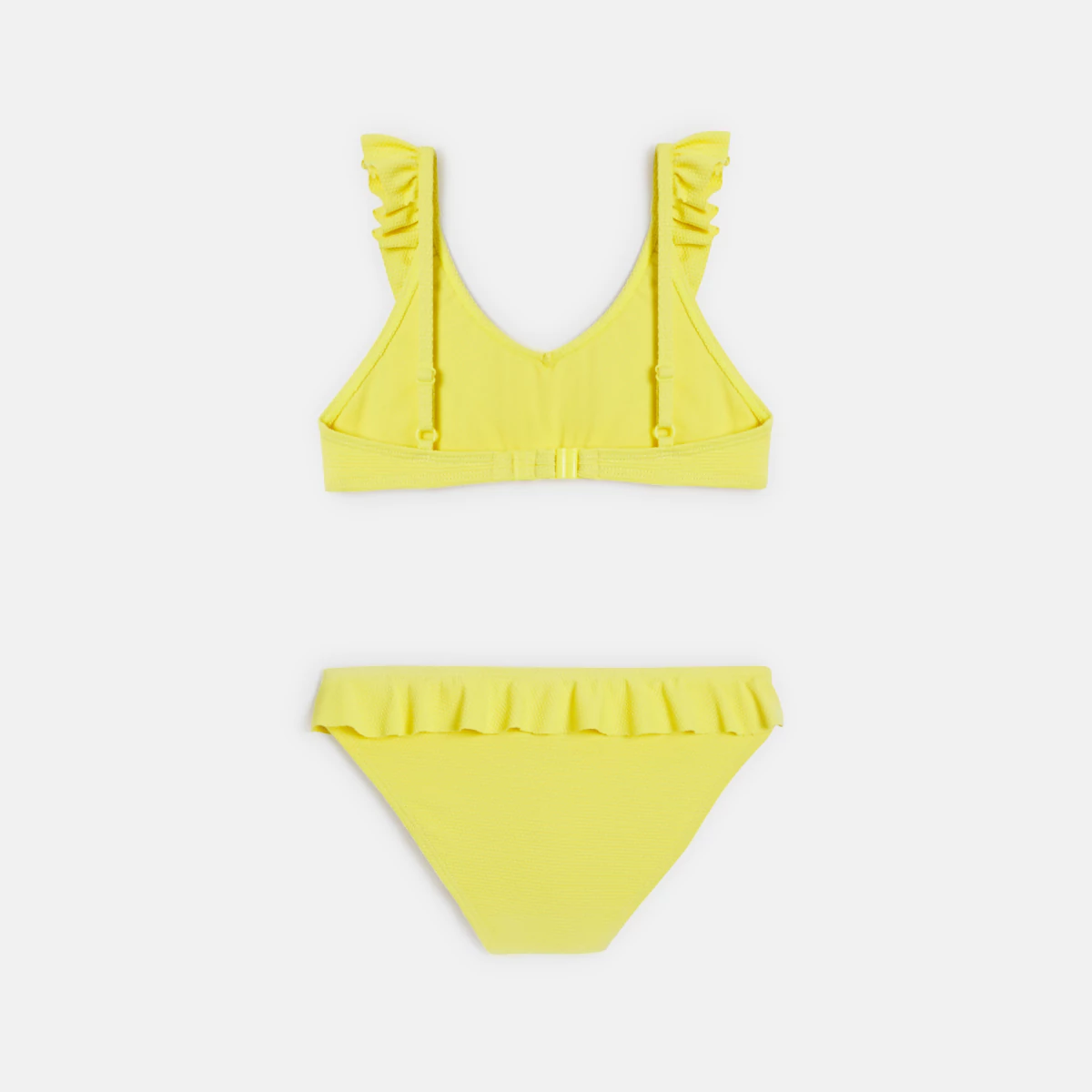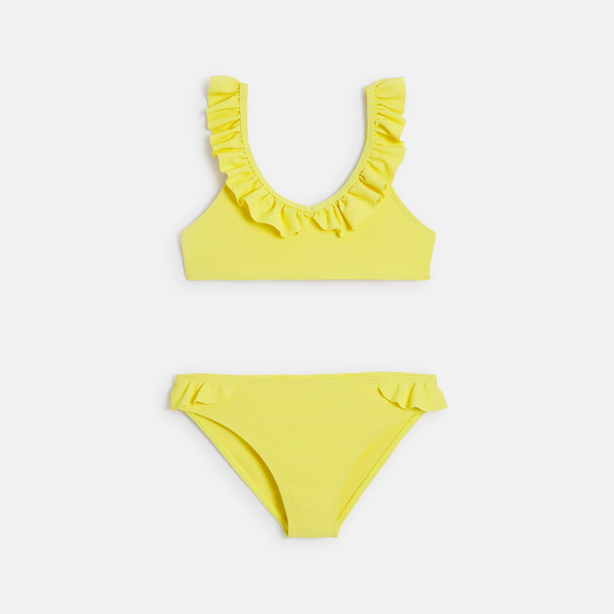Les filles lu2019été et ce maillot de bain jaune soleil se donnent rendez-vous pour profiter des joies de la baignade ! Volants en détail sur lu2019encolure arrondie du haut de maillot et de chaque côté du slip de bain. Maillot doublé. Bretelles ajustables clip dos. Maille microfibre conçue pour la baignade. Sèche rapidement. Rincer à l'eau claire après utilisation.n