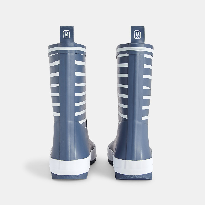 Pour sauter dans les flaques jouer dans le sable ou partir à la cueillette des champignons les enfants n'ont qu'à enfiler leurs bottes de pluie Okaïdi ! Des bottes rayées esprit marin rigolotes à l'intérieur coton tout doux pour le confort.