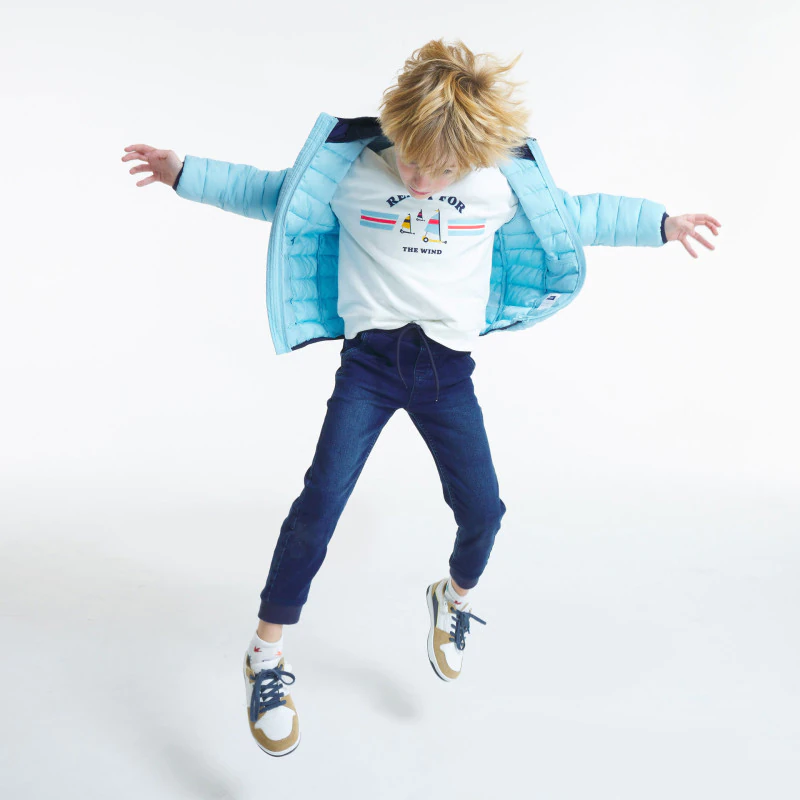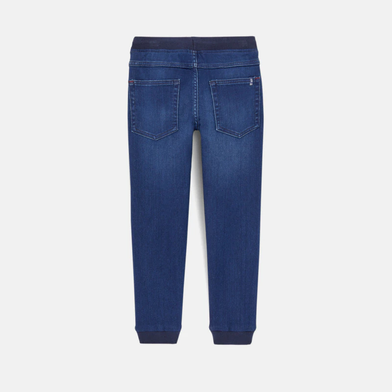 Les garçons ont raison : le confort de ce pantalon en jean leur va bien ! Le jean légèrement extensible et la taille côtelée élastiquée permettent une grande liberté de mouvements. Un jean original et sportswear indispensable. Délavage accentué par endroit. Liens coulissants à nouer. 4 poches. Bords côtelés.