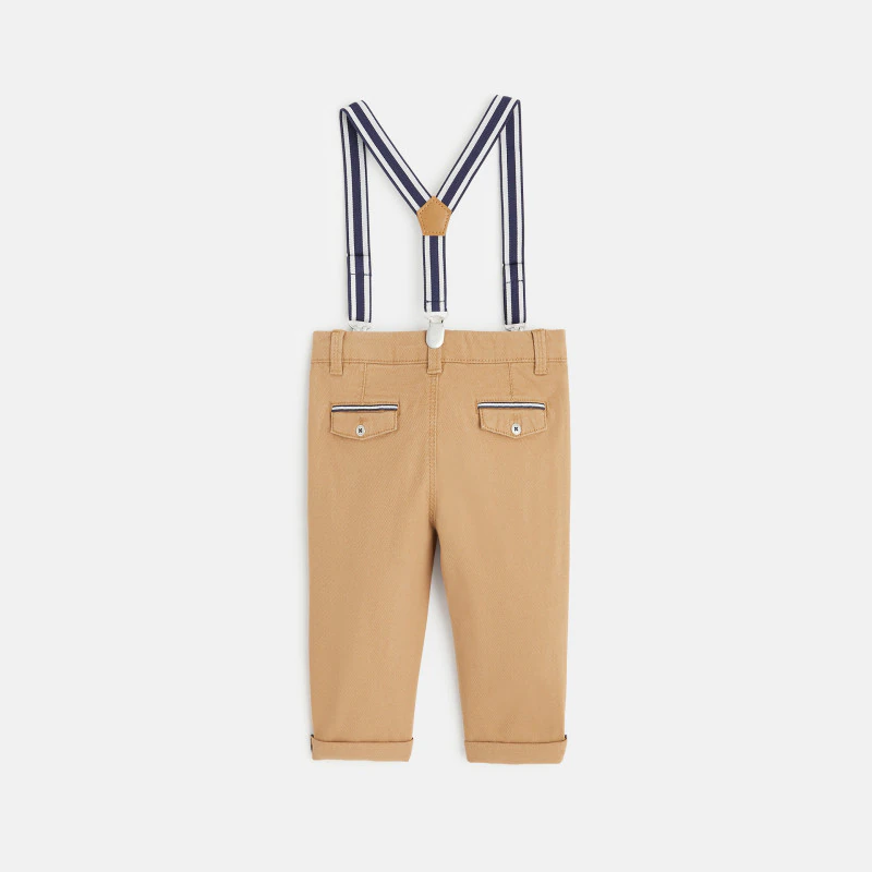 Pantalon coton fantaisie à bretelles clipsées marron bébé garçon
