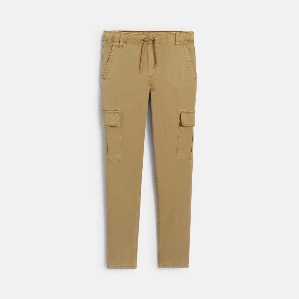 Ecole week-end vacances : ce pantalon cargo beige sable et multipoches a tout bon ! Coupe slim. Toile de coton douce effet légèrement lavé. Plis froissés en détail. Taille élastiquée ajustable cordon coulissant à nouer. Coutures ton sur ton.