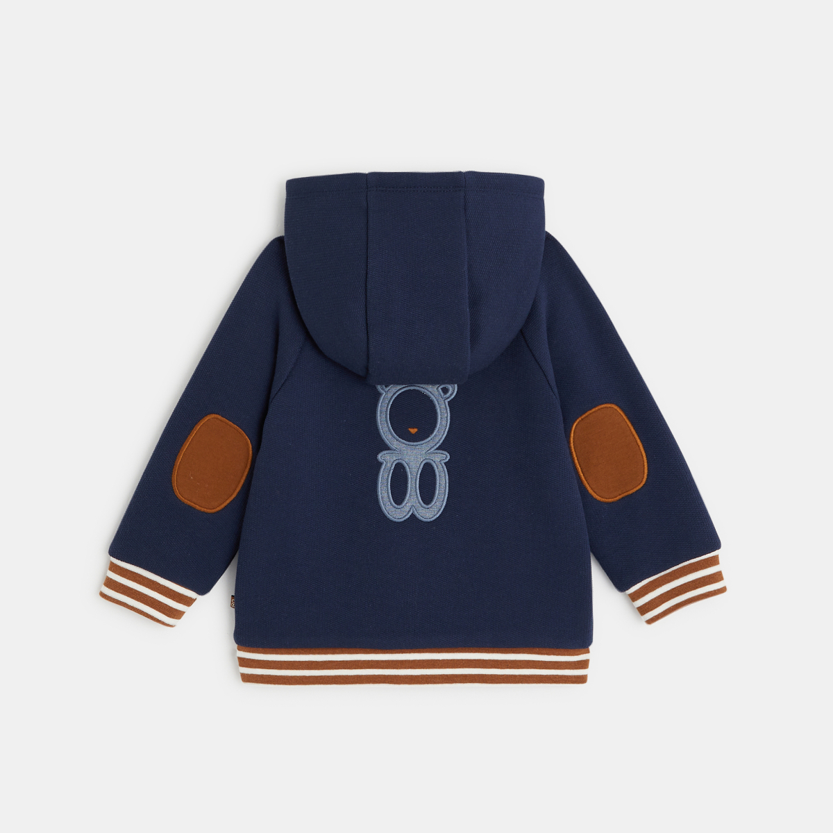 Gilet molleton nid d'abeille capuche amovible bleu bébé garçon