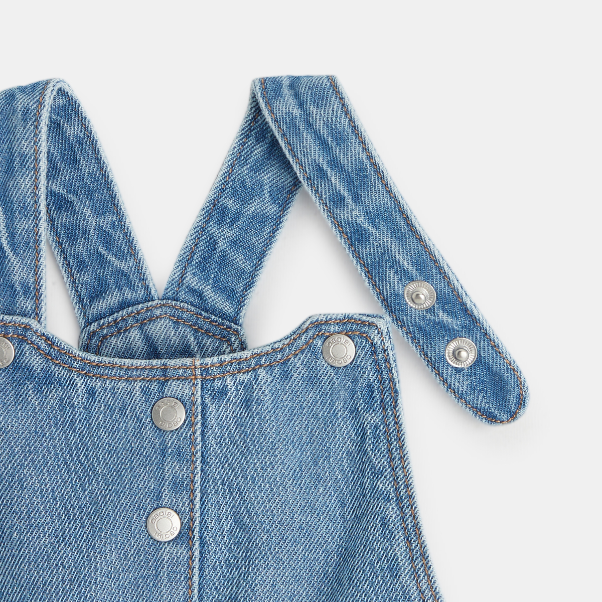 Indémodable le denim se porte en toute occasion avec cette robe salopette. Sa ceinture fantaisie apporte une touche romantique. Bretelles ajustables pressionnées.