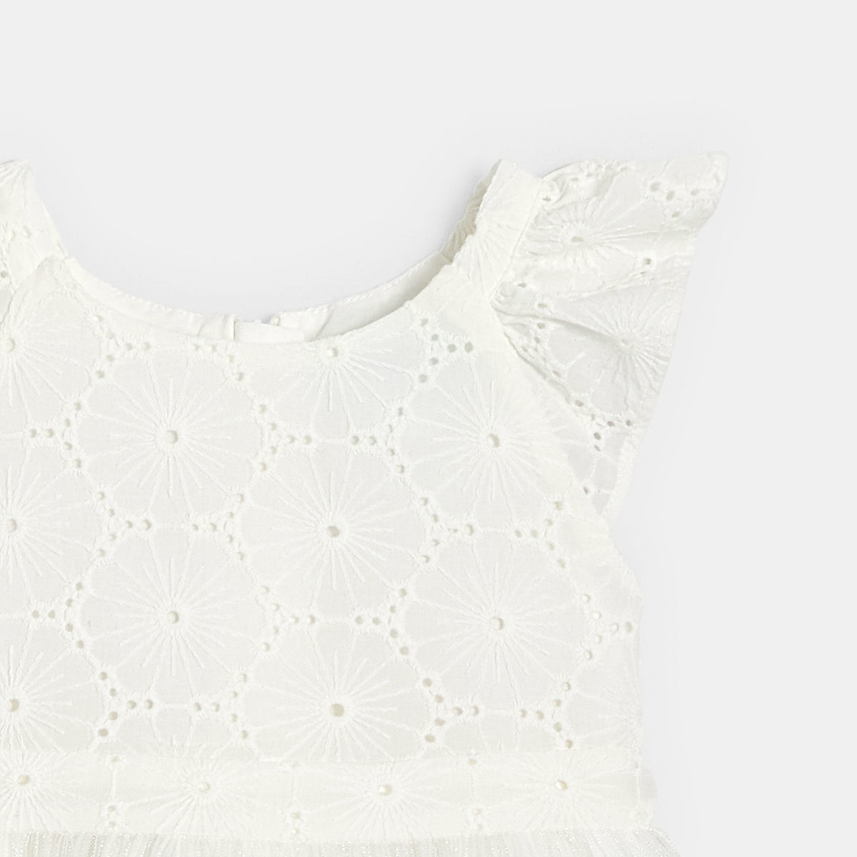 Robe chic bi-matière dentelle et plissé blanc bébé fille