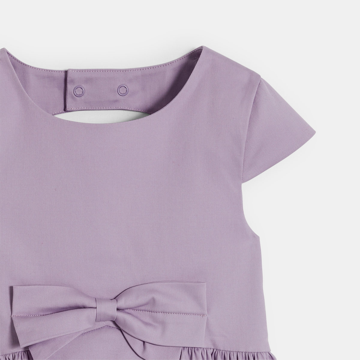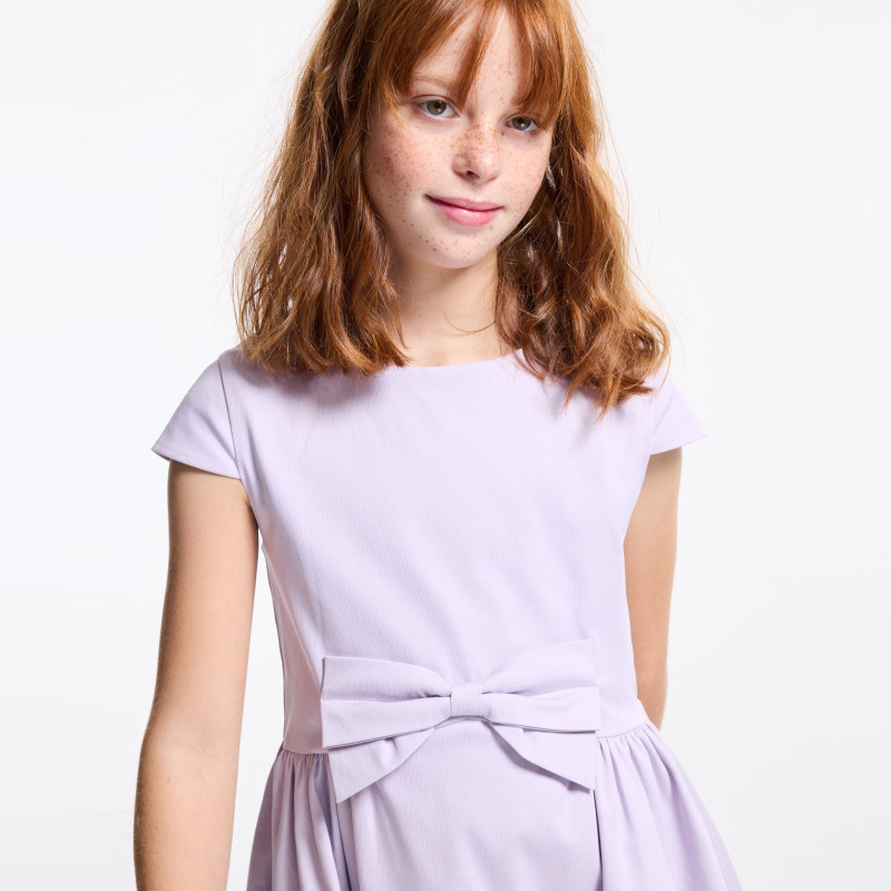Le grand nœud papillon posé sur la taille donne une note rétro-chic à cette robe habillée. Cérémonie, fête, anniversaire... elle est prête à danser avec sa coupe évasée. Encolure arrondie pressionnée dos. Découpe graphique dos. Fronces à la taille. Doublure.