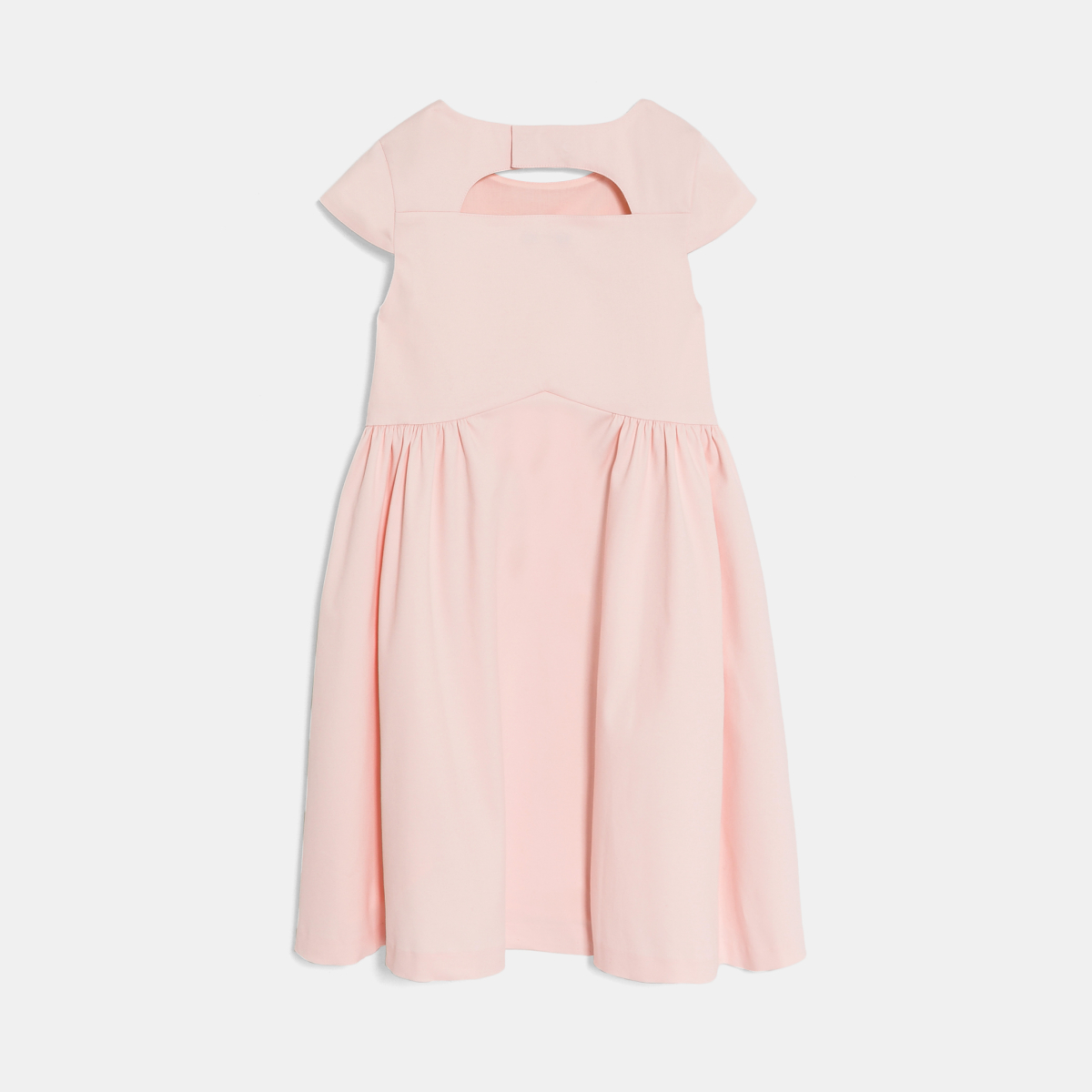 Ambiance rétro chic pour cette robe fluide agrémentée de fleurs découpées et posées à la taille. On fait le focus aussi sur la découpe graphique dans le dos et les manches très courtes. Encolure arrondie, patte pressionnée dos, enfilage facile. Découpes froncées sur les côtés. Doublure.