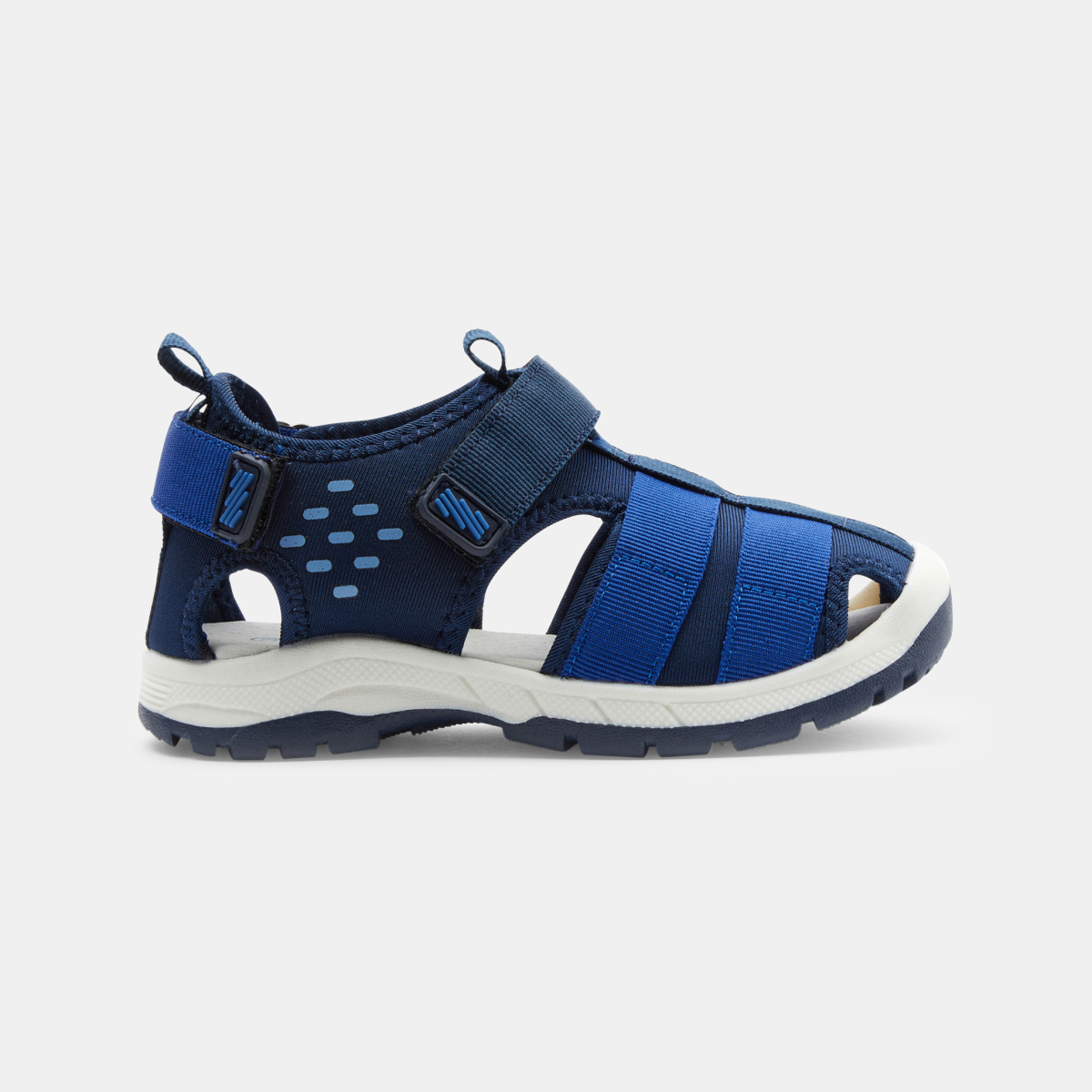 Pour un été tout confort ces sandales style trek emmènent les garçons loin dans leurs aventures ! Semelle intérieur en cuir confortable. Fermeture par un scratch sur le dessus et un au talon. Matière souple qui laisse respirer la peau.