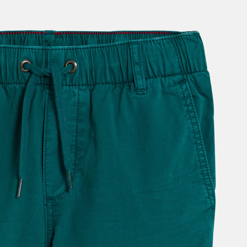 Mode aventure activé avec ce bermuda cargo vert foncé ! Pour parcourir le monde jouer avec ses copains ou profiter des beaux jours les garçons valident la taille élastiquée ajustable et les multipoches ! Toile de coton. Effet froissé par endroit. Cordon à nouer. Coutures ton sur ton.