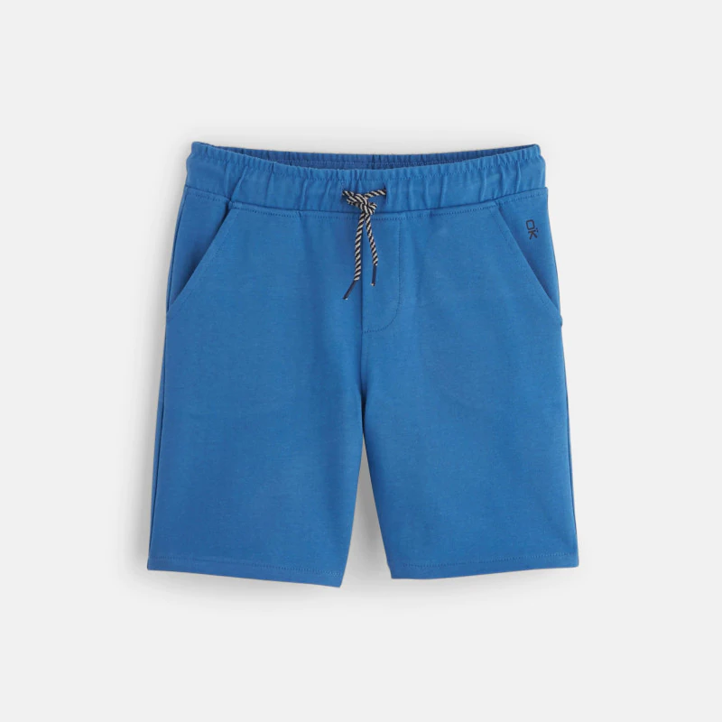 Description Les garçons vont se faire une belle place au soleil avec ce bermuda uni en jersey de coton tout doux. Taille élastiquée avec cordon coulissant à nouer. 2 poches en biais devant. 2 fausses poches dos. Coutures ton sur ton. Logo Okaïdi en détail.