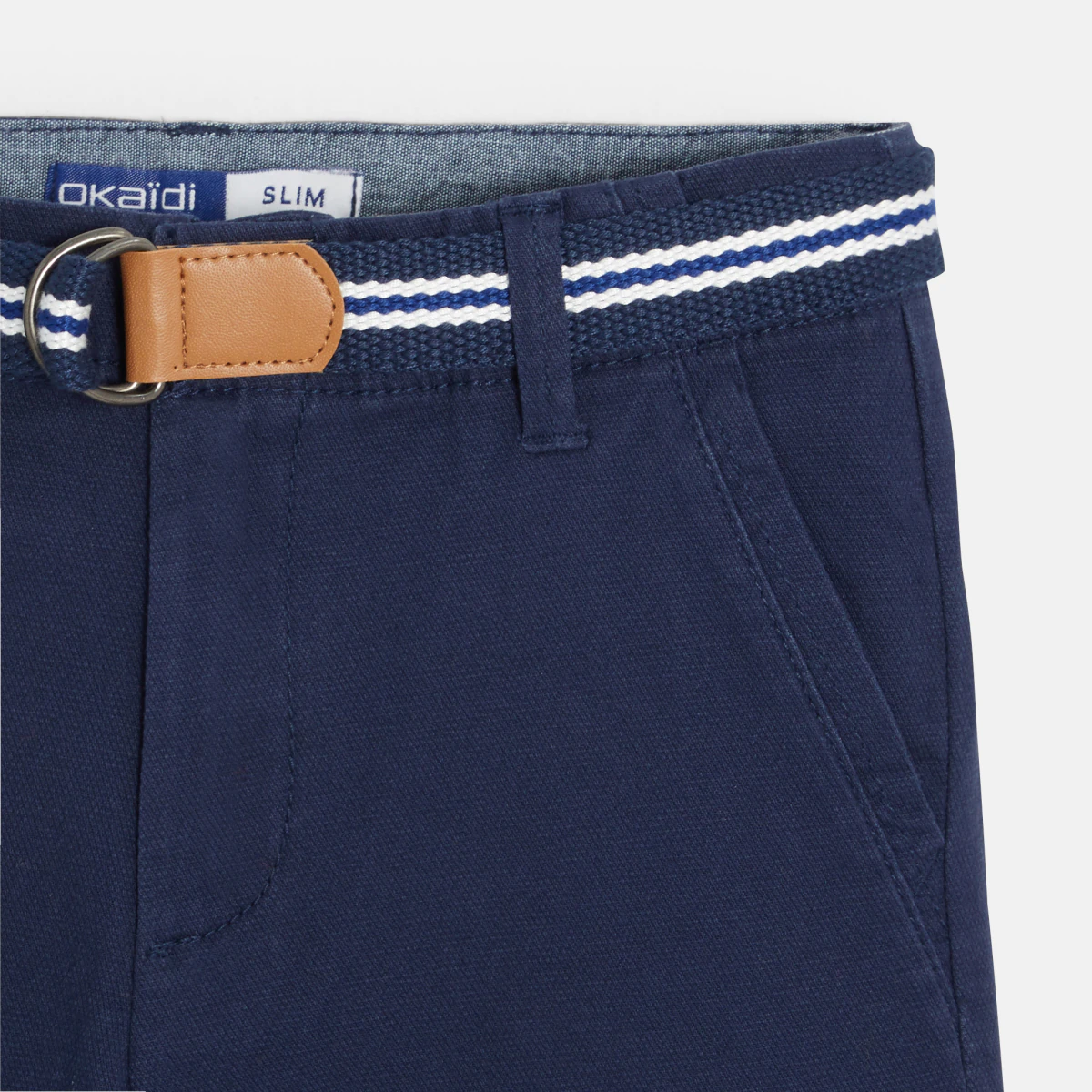 Description Coordonné à une chemise pour un look cérémonie. En duo avec un polo pour un style sportswear. Associé à un t-shirt pour partir en vacances. Tout est possible ! Toile de coton à effet tramé légèrement extensible. Passants. Ceinture sangle ajustable et amovible. Ouverture par bouton et zip caché devant. Tour de taille ajustable par élastique boutonné à lu2019intérieur. 2 poches devant + 1 poche ticket 2 fausses poches dos. Revers ajustables.