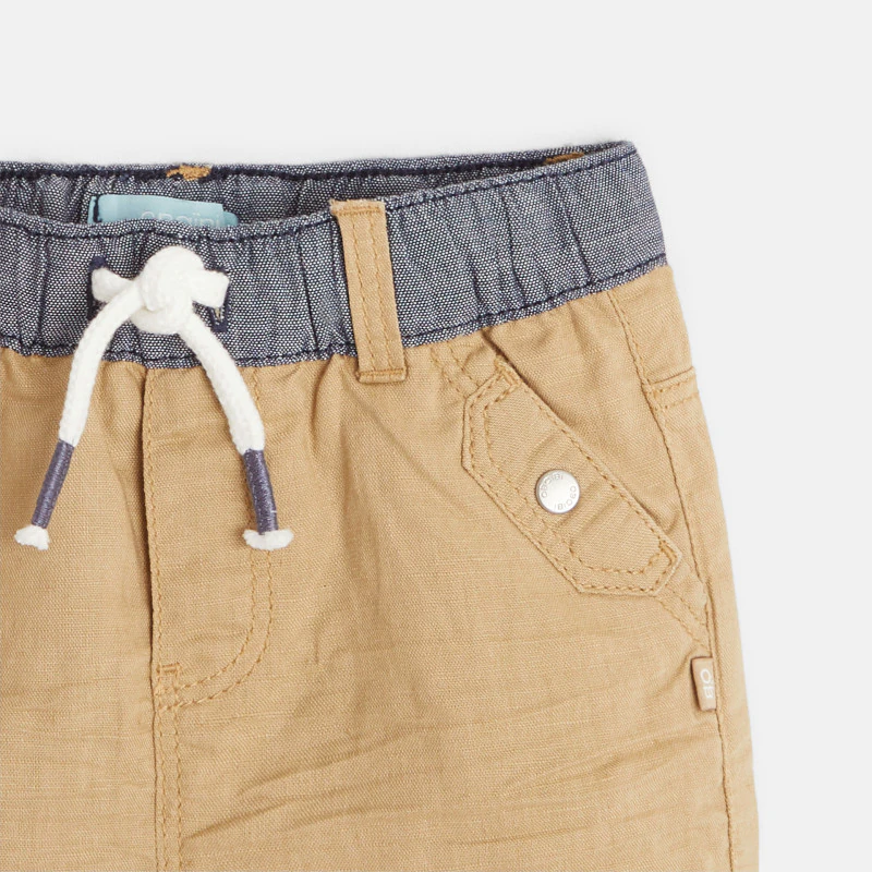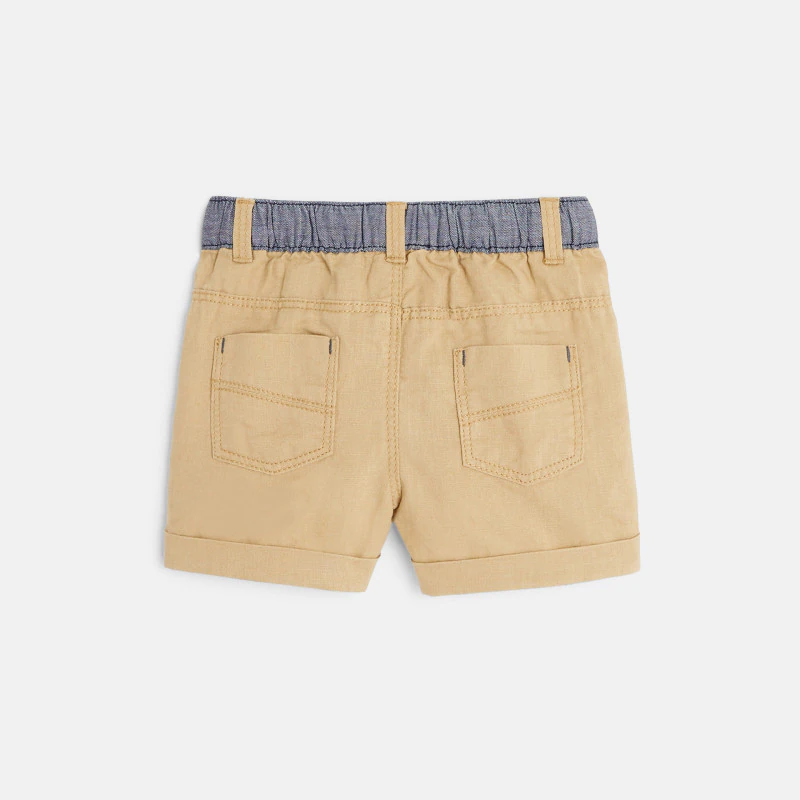 Parfait pour les journées actives des petits garçons ! Short en lin et coton léger avec ceinture en chambray élastiquée avec lien. Taille ajustable.