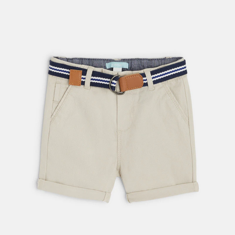 Un look chic et preppy pour ce short chino en twill de coton. Ceinture tressée en coton pour s'habiller comme les grands. Fermeture par un bouton et taille ajustable à l'intérieur.