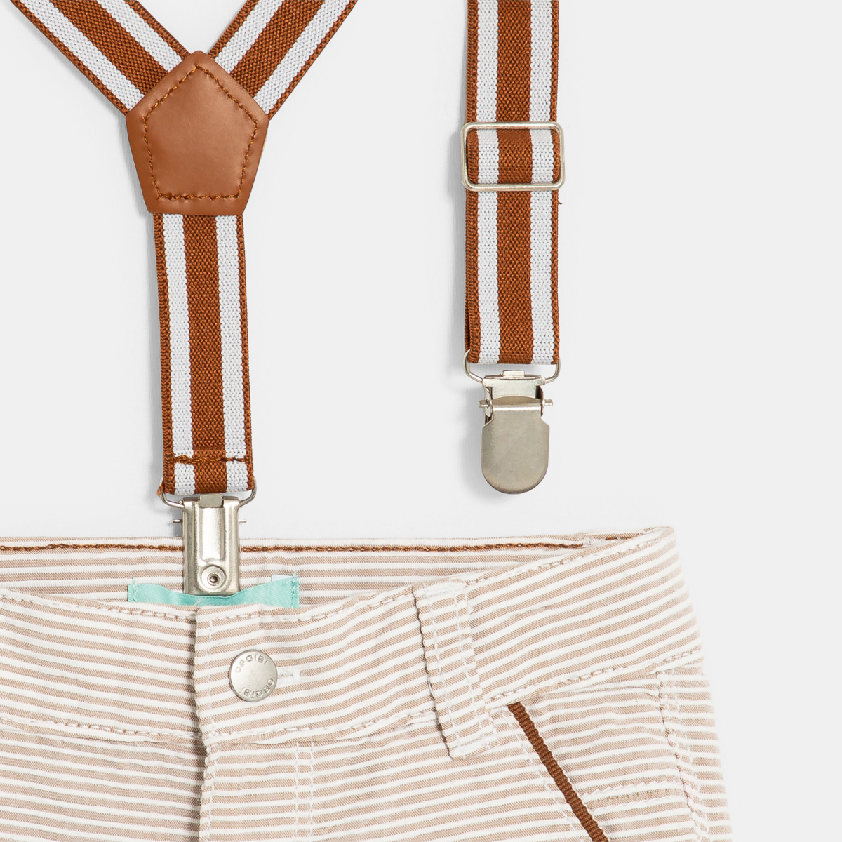 Un petit style rétro qu'on adore dans le vestiaire des garçons ! Ce bermuda en coton rayé fantaisie se porte selon les envies avec ou sans les bretelles ajustables. Avec un t-shirt ou une chemise c'est un look parfait assuré ! Taille ajustable par boutons.