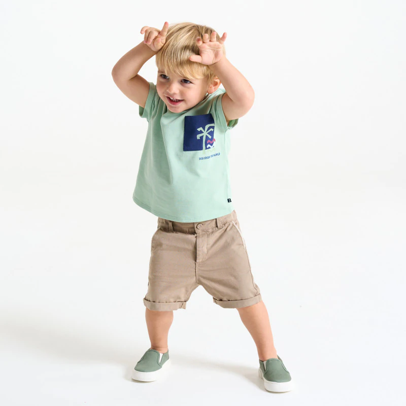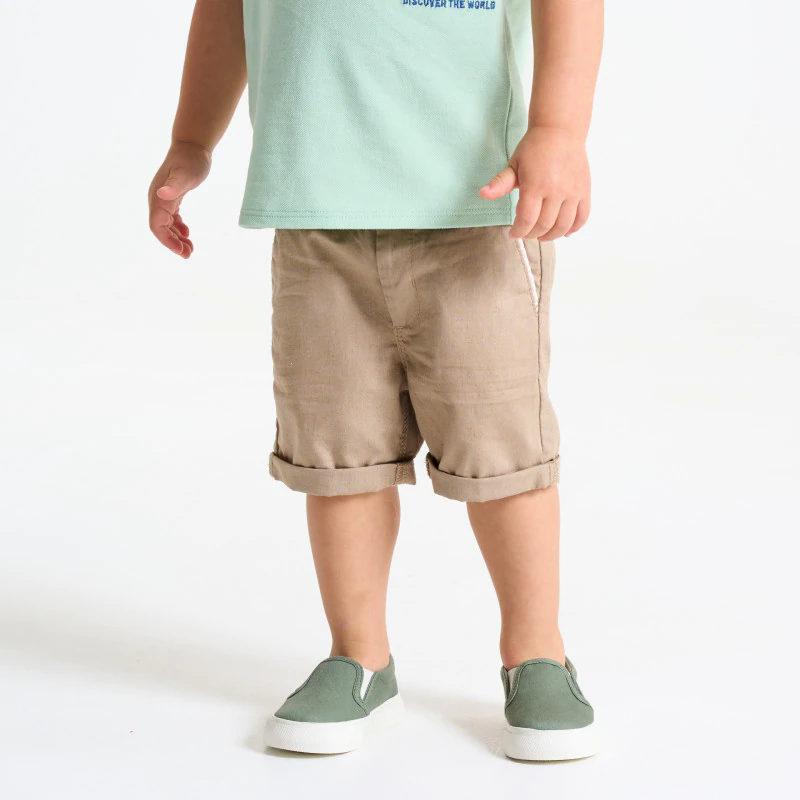 Description Pour s'habiller comme les grands, les garçons choisissent ce short confortable et léger. Un mélange de coton et de lin pour une forme droite à revers, avec ceinture en tissu.