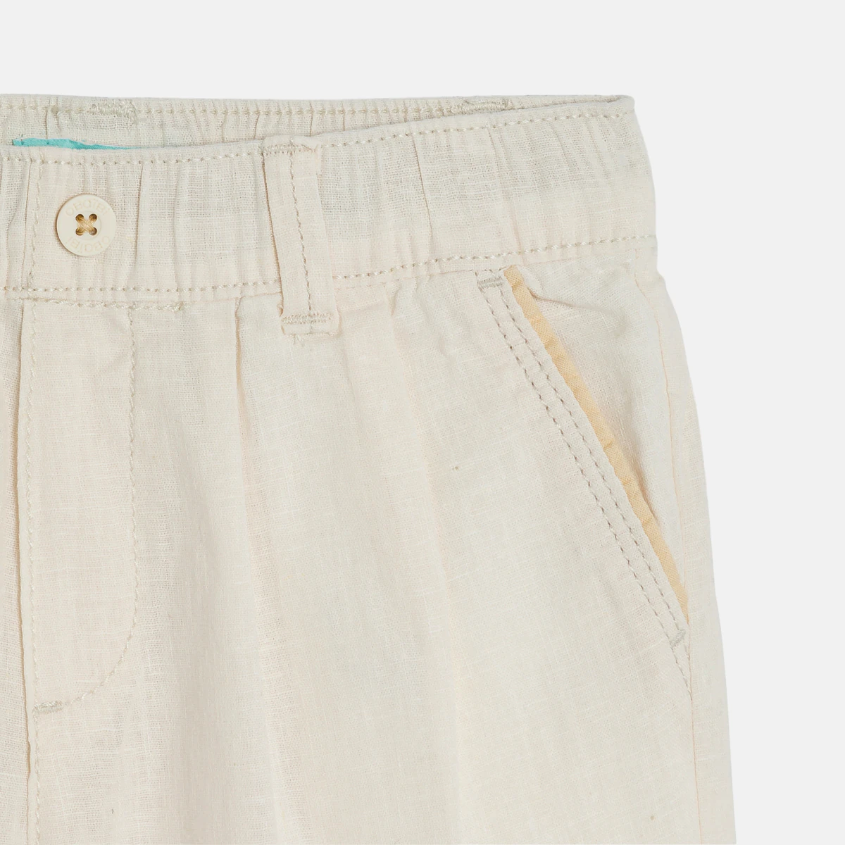 L'élégance du lin associée au confort du coton : voici la promesse de ce short à pinces qui ravit les garçons. Une forme à poches avec biais contrasté et taille élastiquée pour habiller facilement les petits.