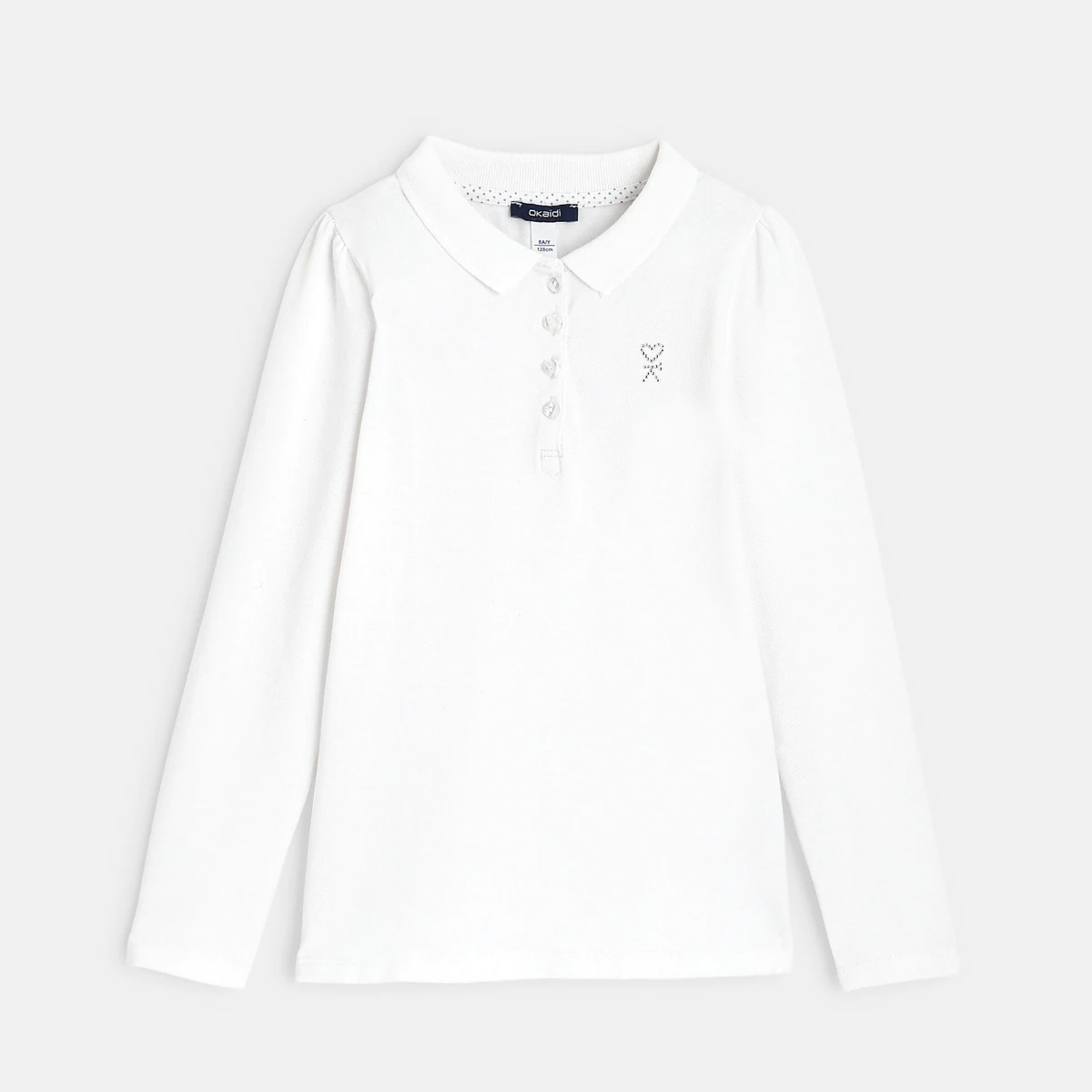 Le logo strassé apporte une petite touche chic à ce polo sportswear. Les filles le portent boutonné jusqu'en faut ou légèrement ouvert. Jersey de coton effet piqué. Coupe droite. Fronces en haut des manches longues. Base droite.