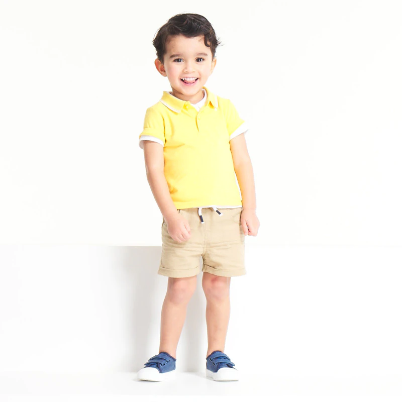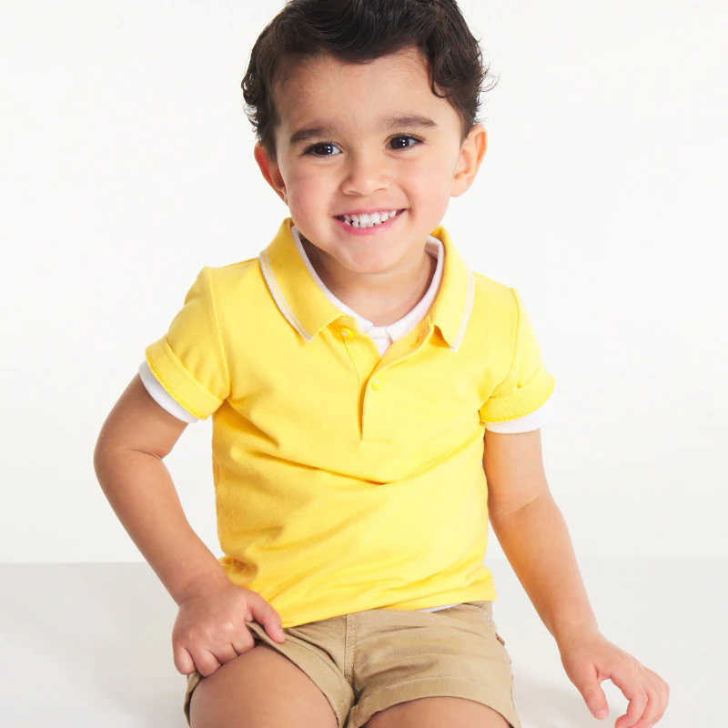 Polo maille piquée uni jaune bébé garçon