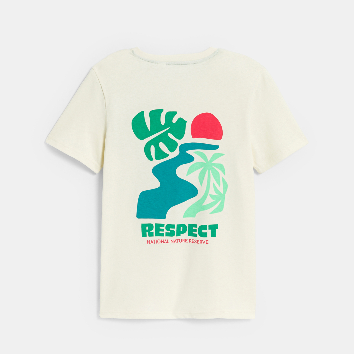 T-shirt à message motif feuille devant et dos blanc cassé Garçon