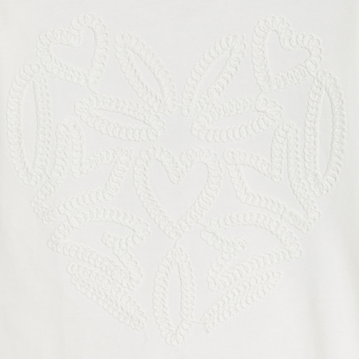 Sur ce t-shirt blanc un motif brodé se dessine en ton sur ton devant : c'est beau et original ! A mixer avec un pantalon imprimé ou un jean tout simplement. Coupe droite. Col rond. Manches longues. Base légèrement arrondie. Coutures ton sur ton.