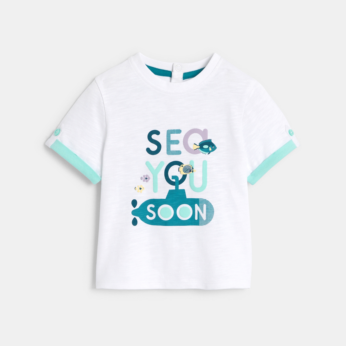Description Joli à regarder et doux à toucher ! Avec son imprimé en relief ce tee-shirt s'impose dans le vestiaire des garçons ! Le détail en plus : les manches courtes avec patte boutonnée. Encolure ronde pressionnée au dos.